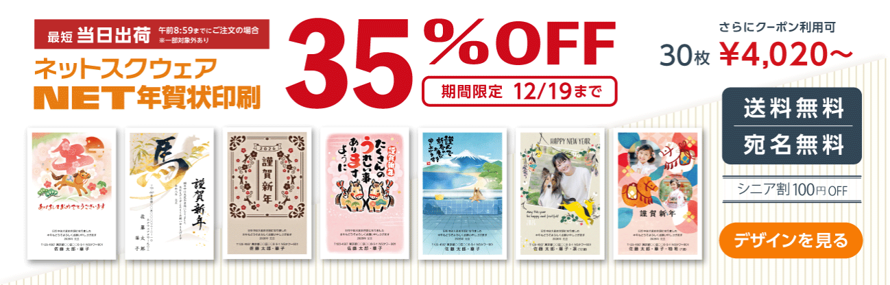 ・毎年好評の「期間限定SALE」や「送料無料」、会員限定「宛名印刷無料」は本年も実施しているそうです!