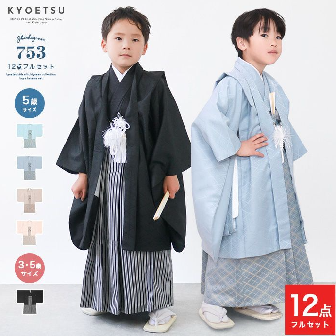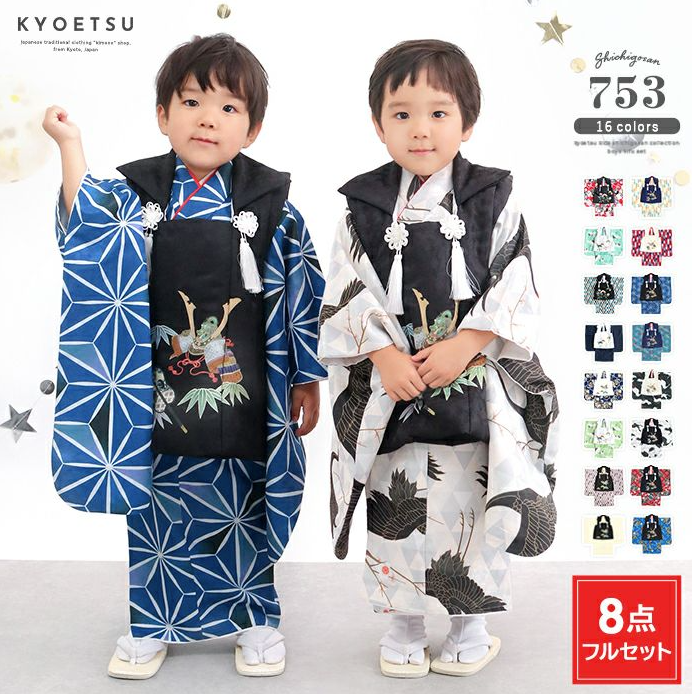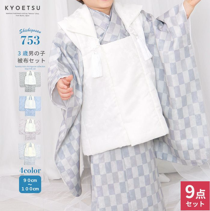 七五三の男の子の3歳のお祝いに。着付けに必要なものはすべて揃っているおしゃれな被布セットです。