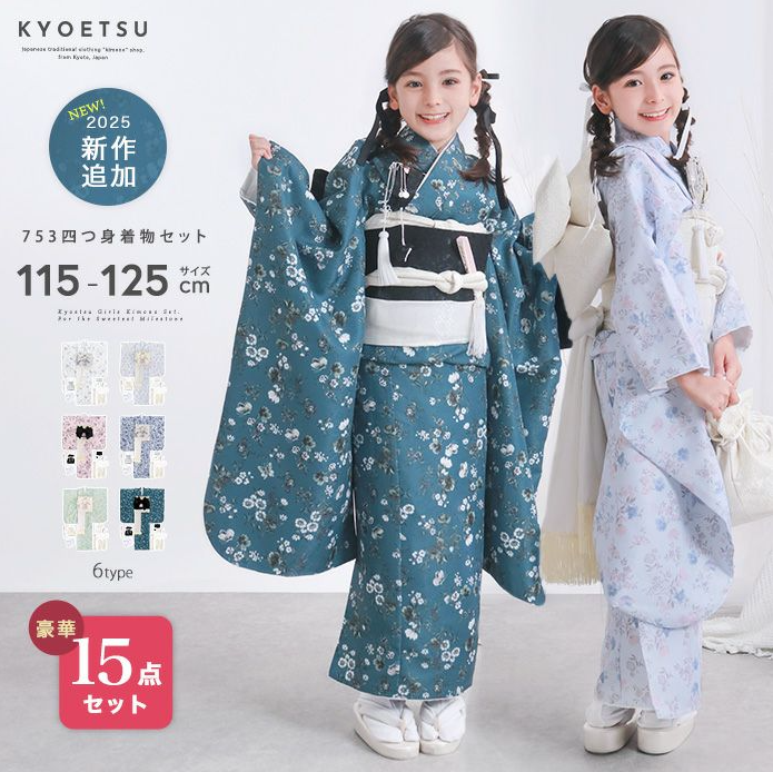 【豪華15点フルセット】新作 七五三 着物 7歳 女の子 四つ身 くすみ 雛祭り お正月